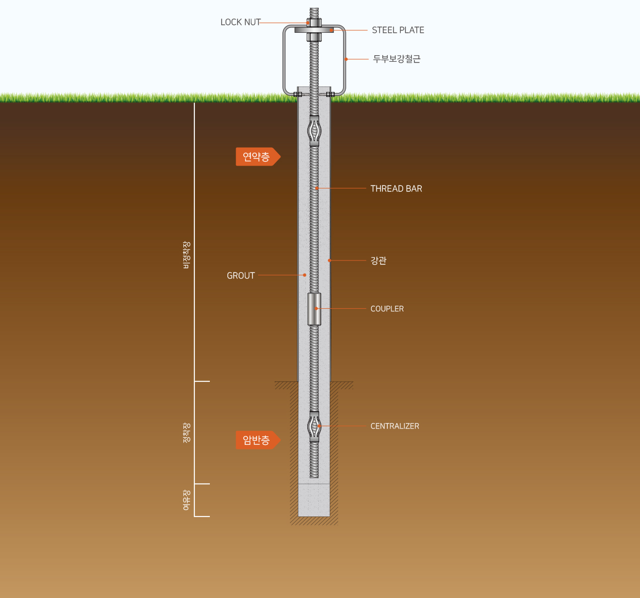 소구경 장비로 천공 후 강관과 강봉을 삽입하고 그라우트를 주입하여 파일체를 형성하는 마이크로파일의 상부를 보강하고